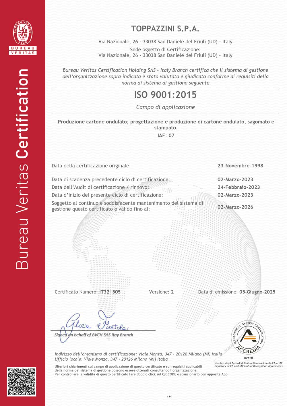 Il Sistema di gestione della Qualità è certificato secondo la norma Uni En Iso 9001:2015 e certificazione